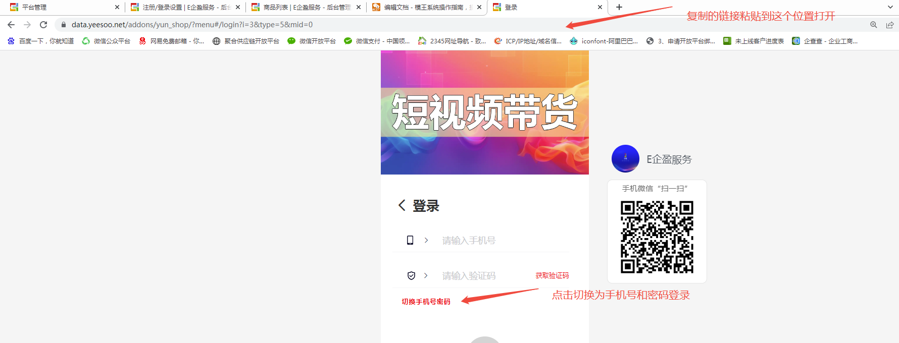 第十一步,粘贴到浏览器打开,切换手机号和密码登录